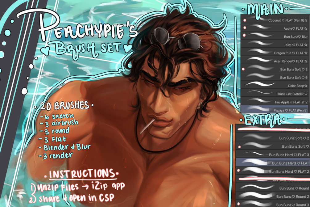 Here is a pack of custom brushes I’ve made for Clip Studio Paint! I added my newest "Appie Fritter" brushes which I use all the time lol. Just made these for fun and I hope you enjoy!